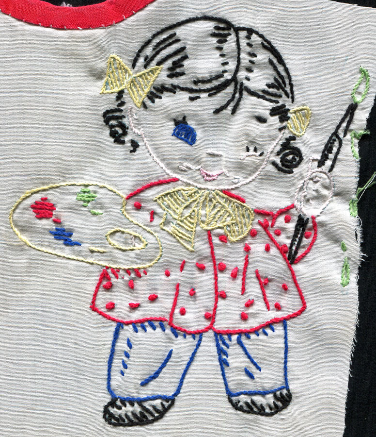 My mom must have started me on the road to art appreciation and textile love when she embroidered this bib for me when I was a baby.