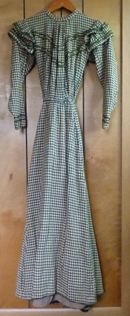 Green and cream wool dress from late 1800s