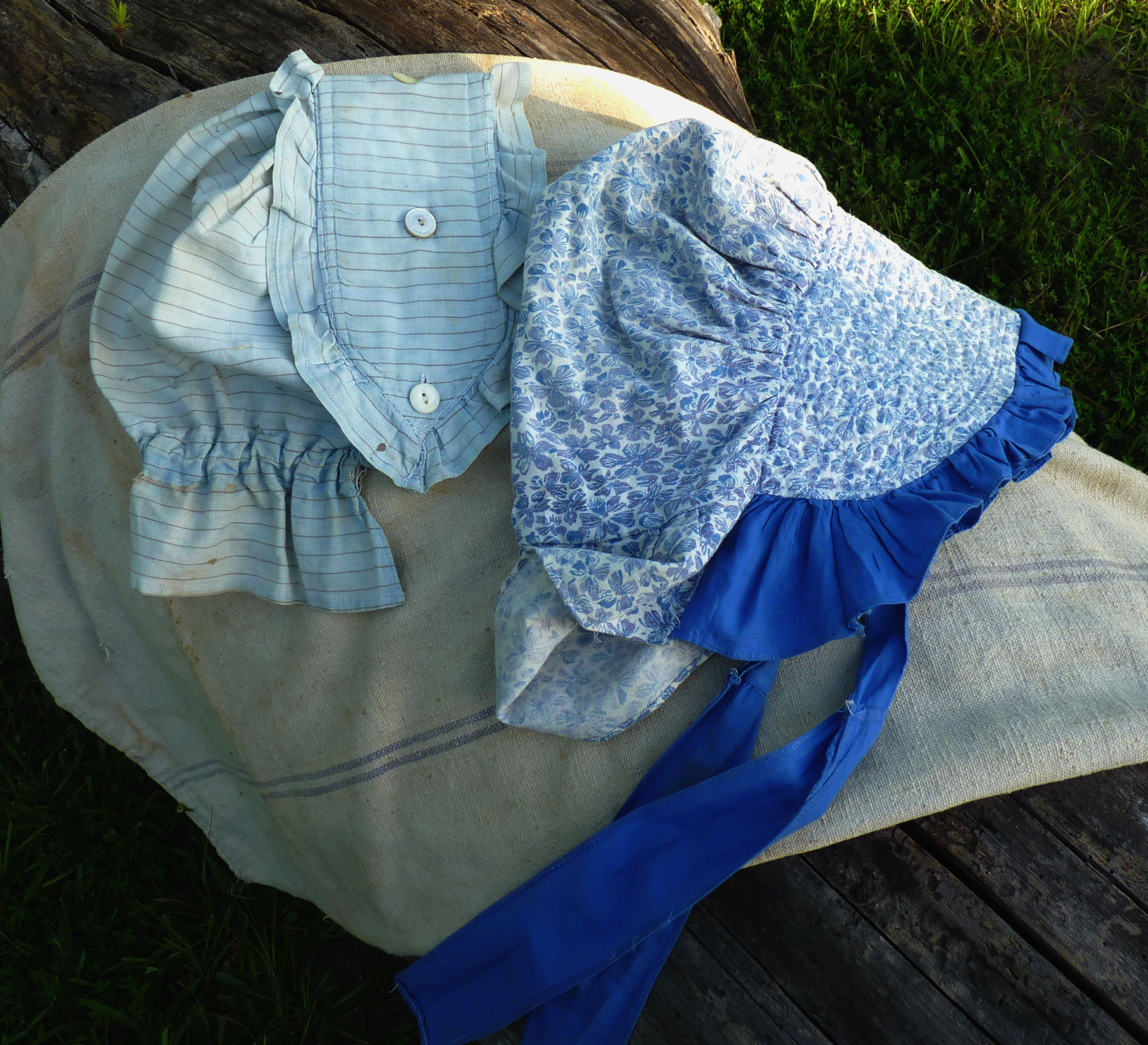 Posting pictures of my extensive cotton crop (4 plants) in Guess the Plant the other day, I remembered a couple of sunbonnets and a feed sack I had tucked away.