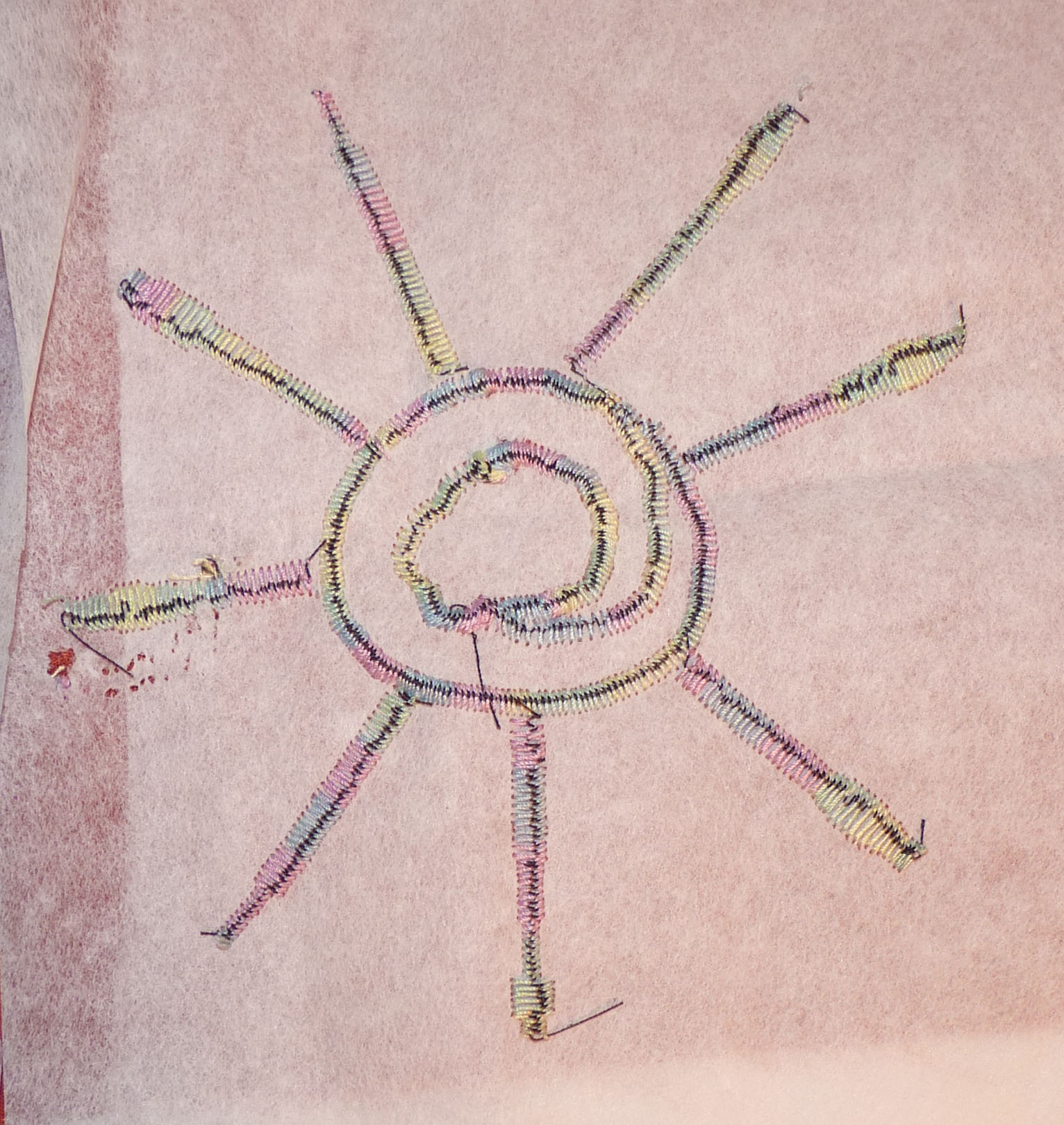 The reverse shows how much the top thread goes to the back when you have a loose thread tension. I like the line of black bobbin thread in the middle of the design. I could do something cute with this idea.