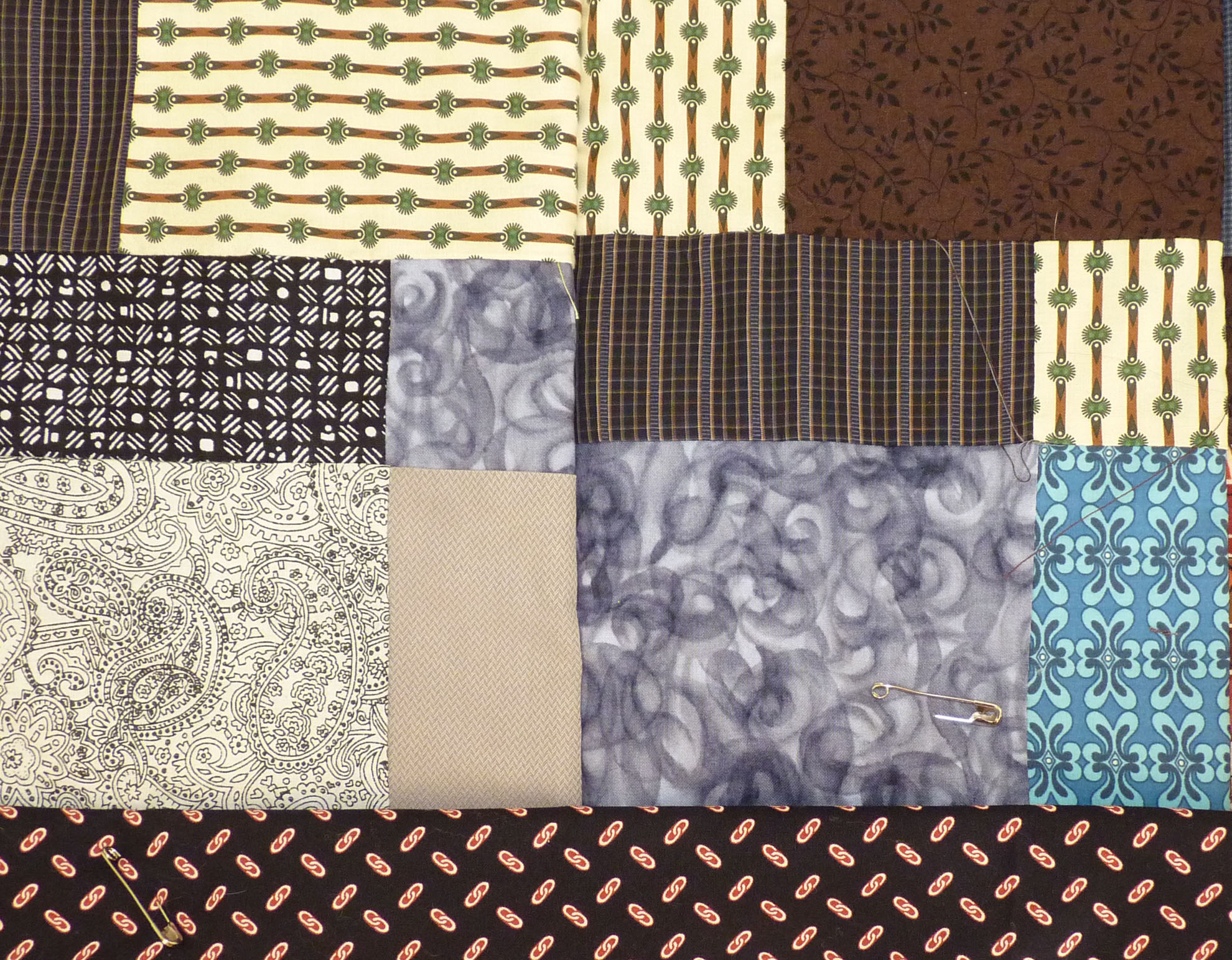 Absolutely, that is the good thing about it. You can start with 9 inch squares to make your initial nine patch, or 12 inch squares, whatever you want. Then when you get the nine patch made, you just cut it down the middle, vertically and then horizontally, and rearrange however you want. You can fold the nine patch to find your middle line, or use a ruler. I don’t worry about precision, myself.