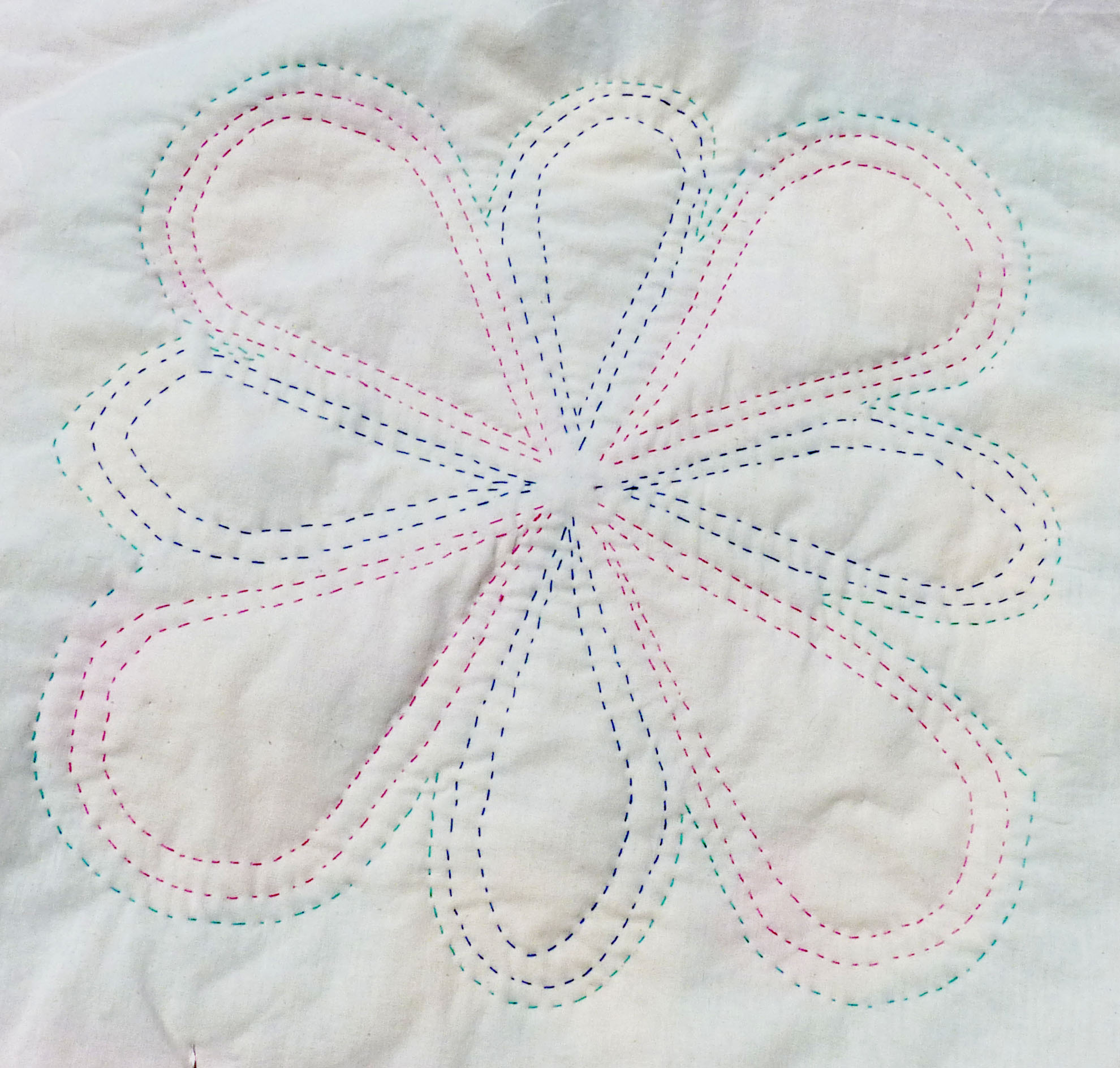 Block B reverse. This petal pattern is probably the easiest to stitch, as far as not having to turn the hoop very often while covering the block with stitches.