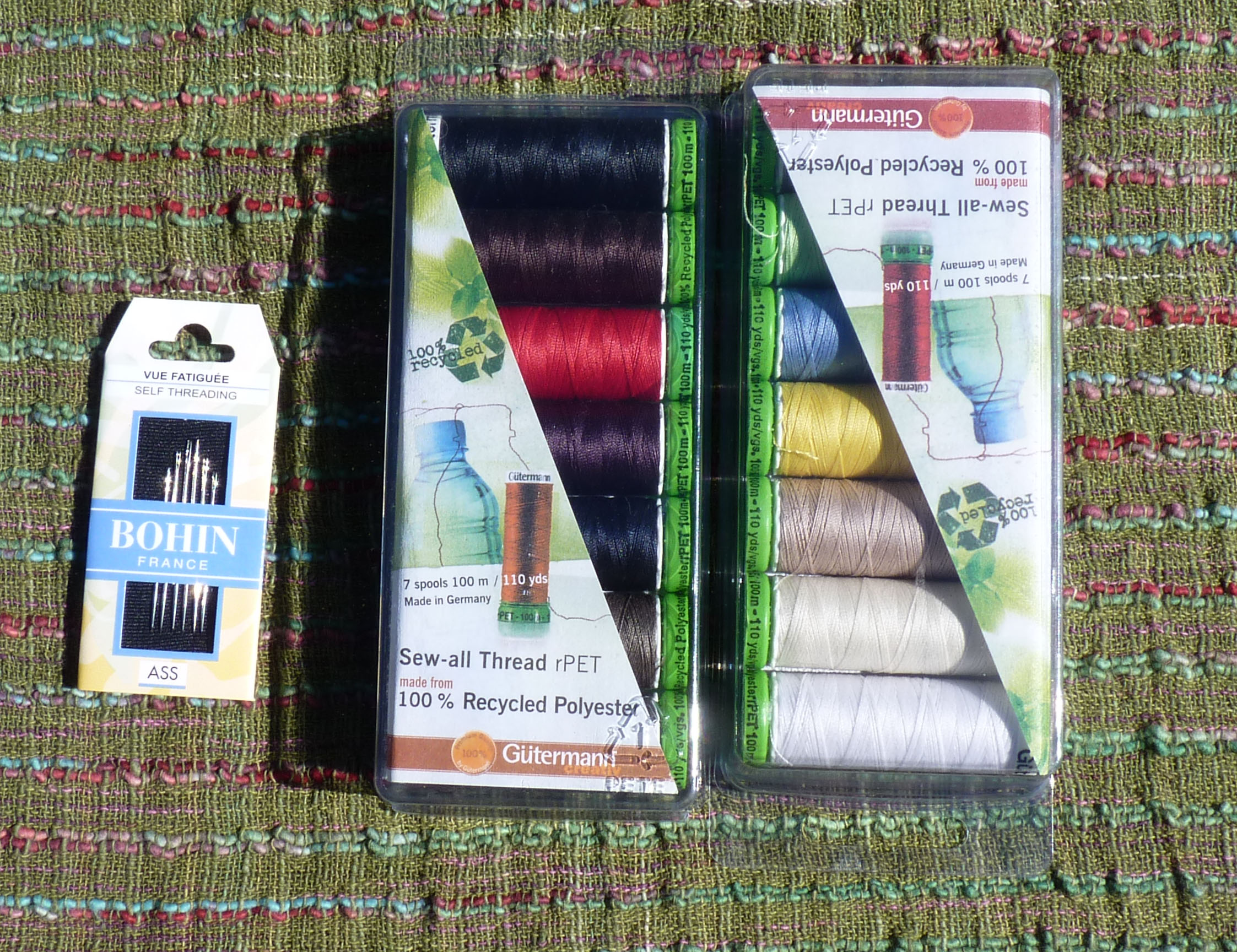 Gutermann is now making polyester thread out of recycled water bottles! One bottle makes ten spools of thread. Even the spools are made from recycled plastic.