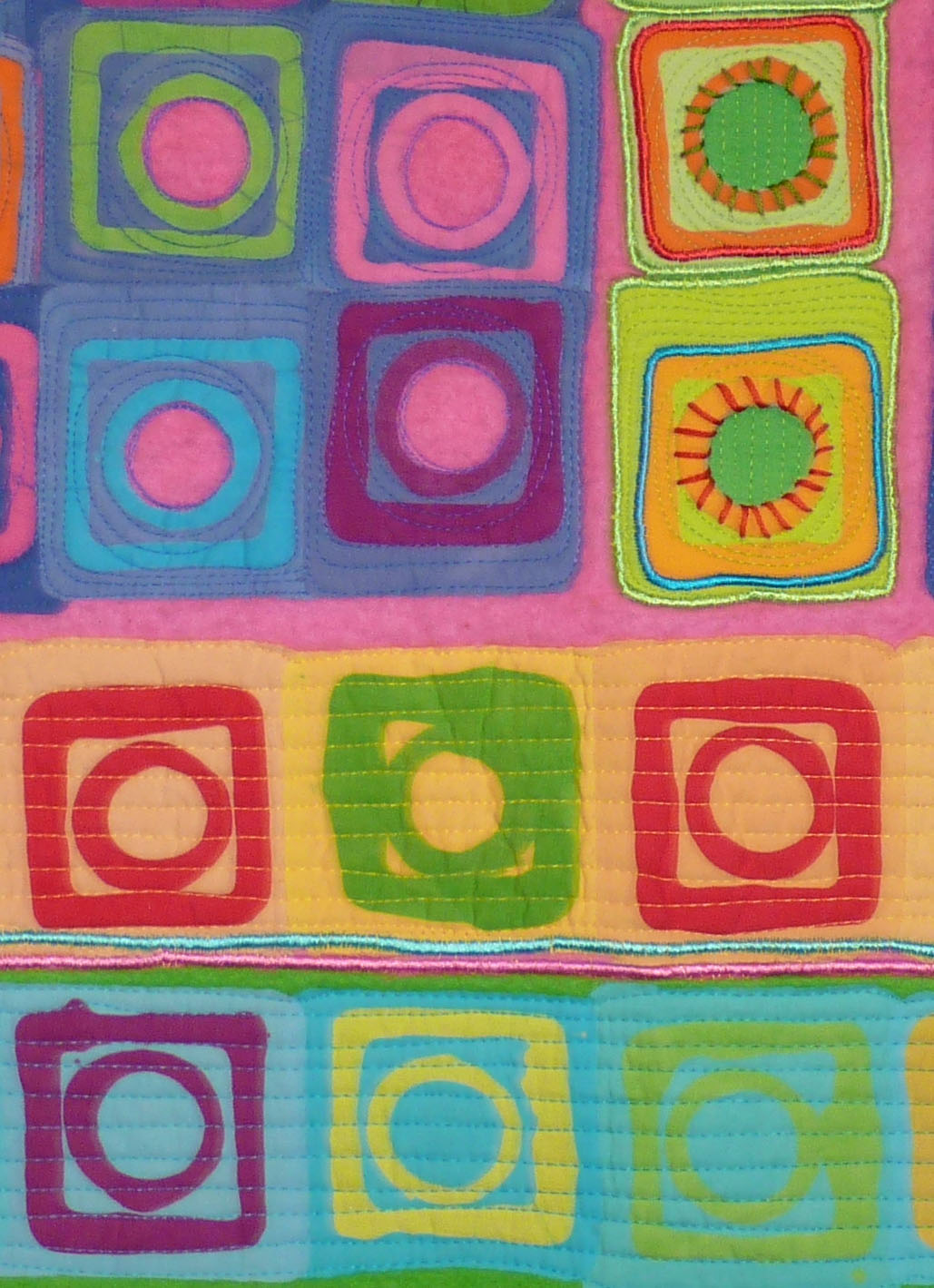 Windows detail, showing how embellishment, applique, and printing are all used together.