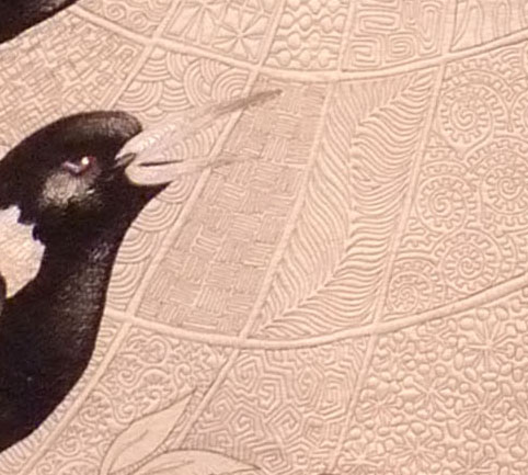 Zen Magpies detail. The variety and quality of the machine quilting amazed me.