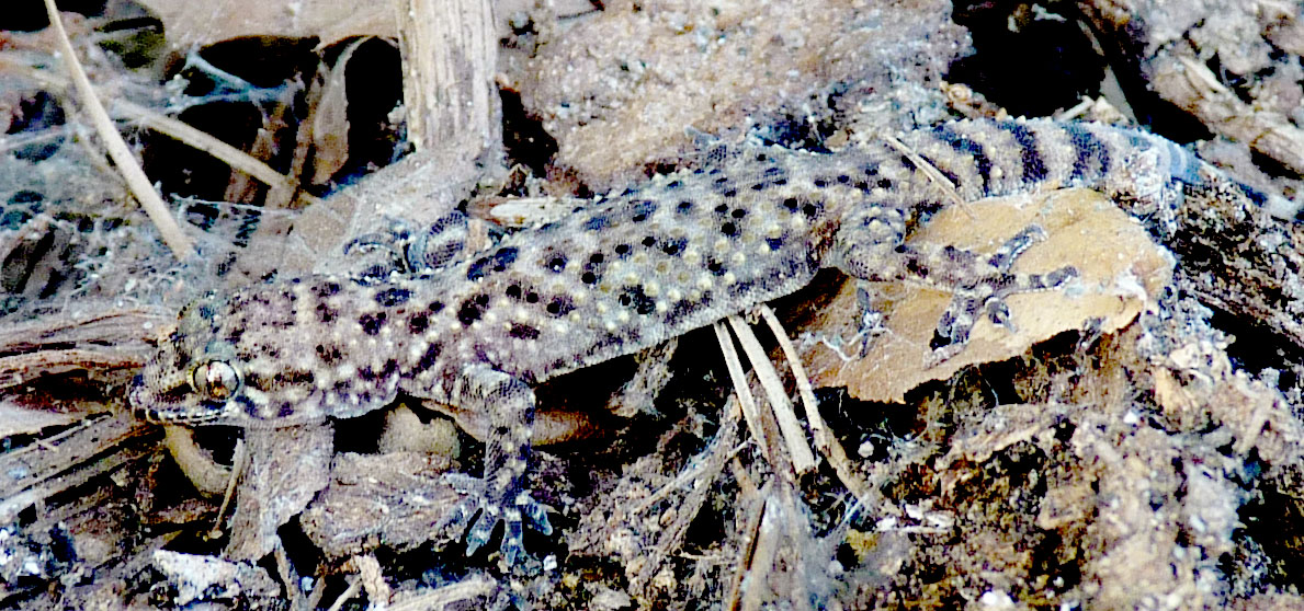 This is a Mediterranean house gecko. They were first recorded in Florida in 1915, and have spread.