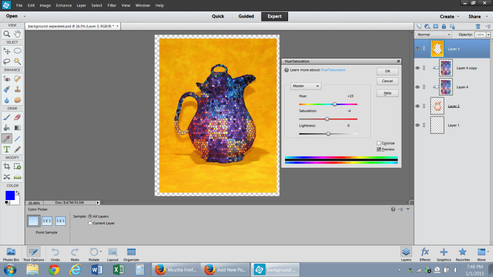 The slider adjusts your existing color, it doesn’t match the color in the display bar.