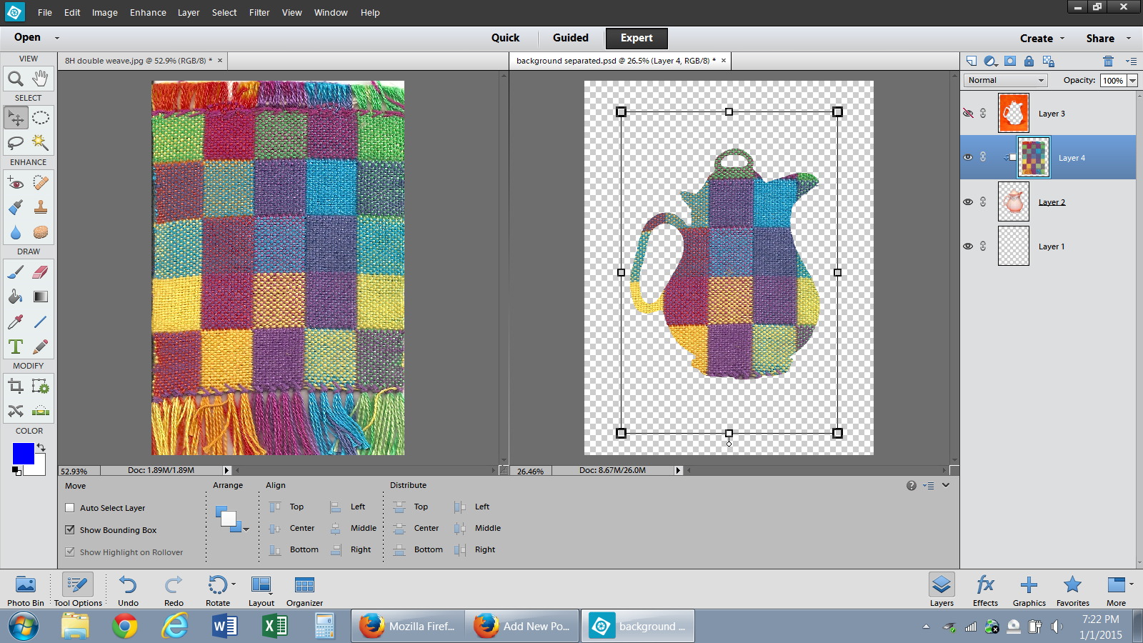 I used the move tool to adjust the fabric expand to the pitcher shape.