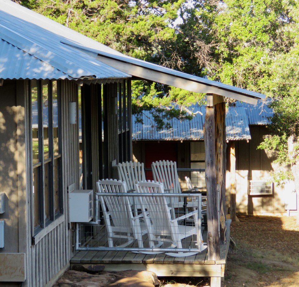 Rocking chairs in the shade.