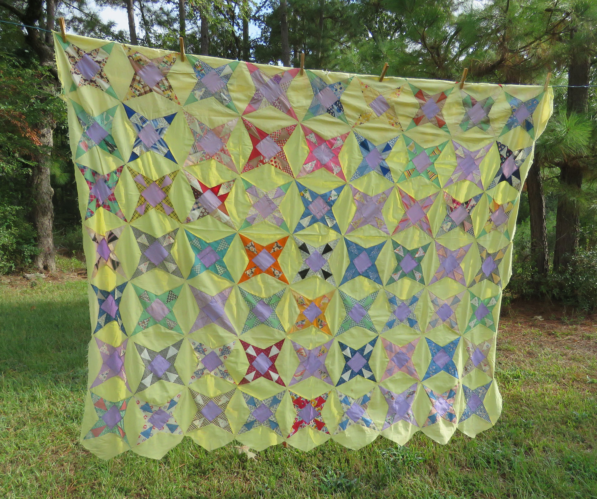 Kaleidescope pattern quilt top, from the 1930s or 40s.