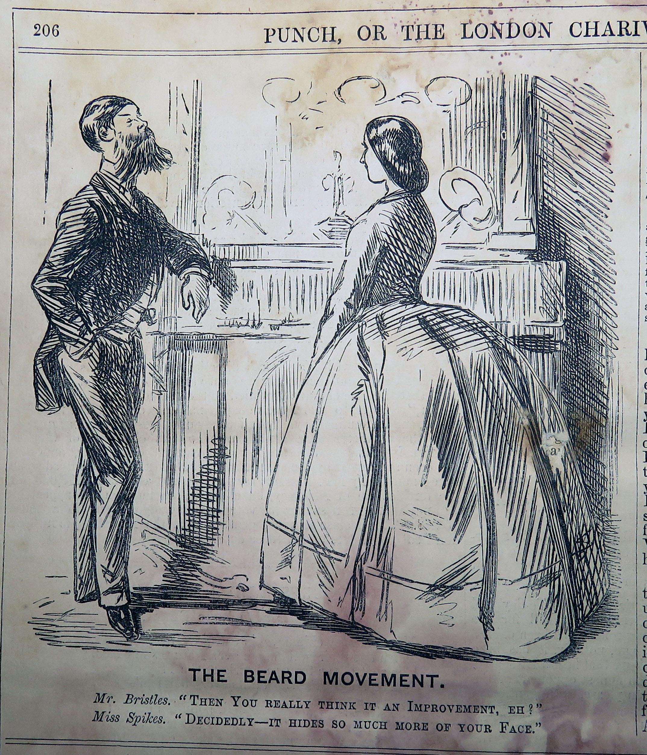 Mr. Bristles. “Then you really think it an improvement, then?” Miss Spikes. “Decidedly– it hides so much more of your face.”