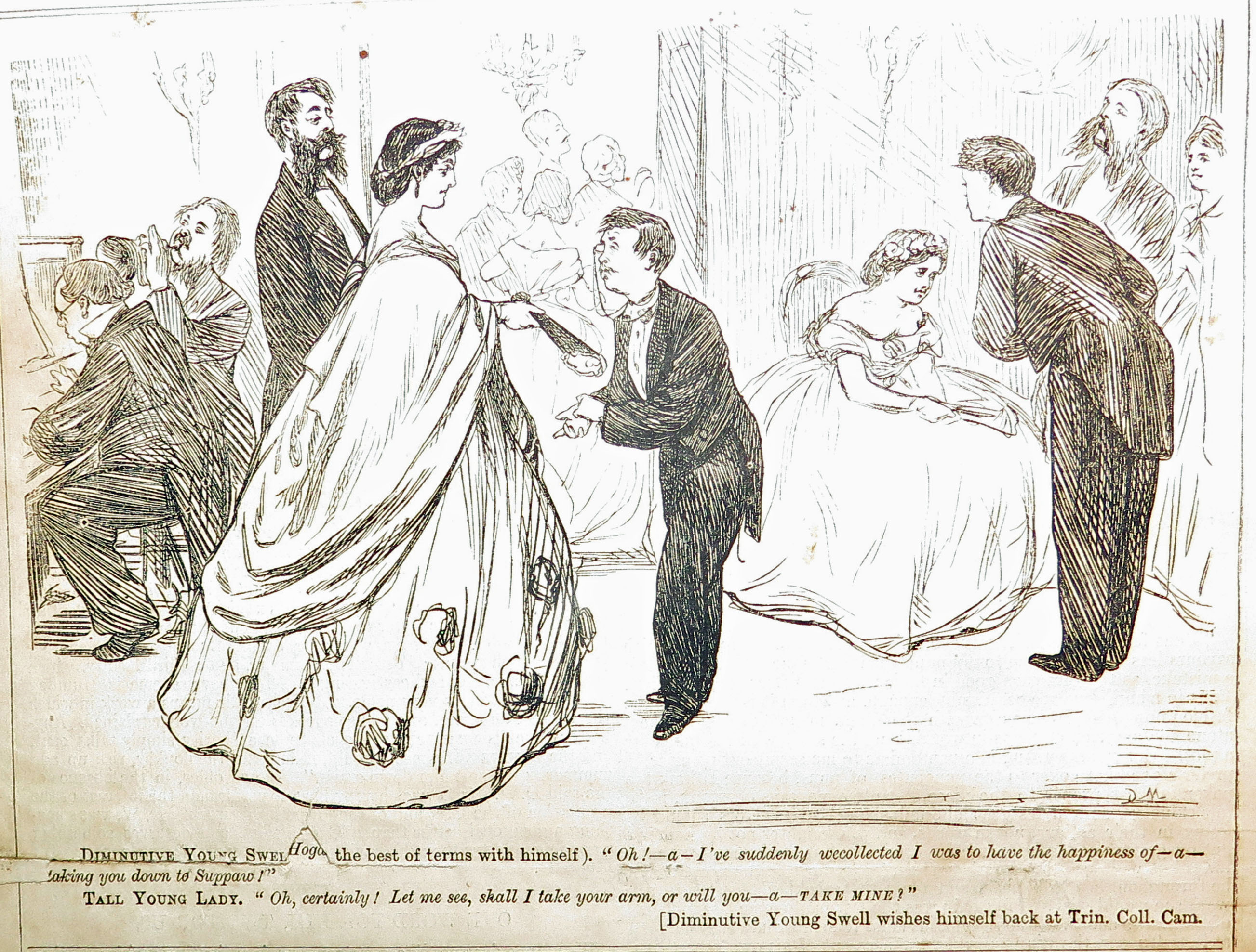 Tall Young Lady. “Oh, certainly! Let me see, shall I take your arm? Or will you – a – take mine?”