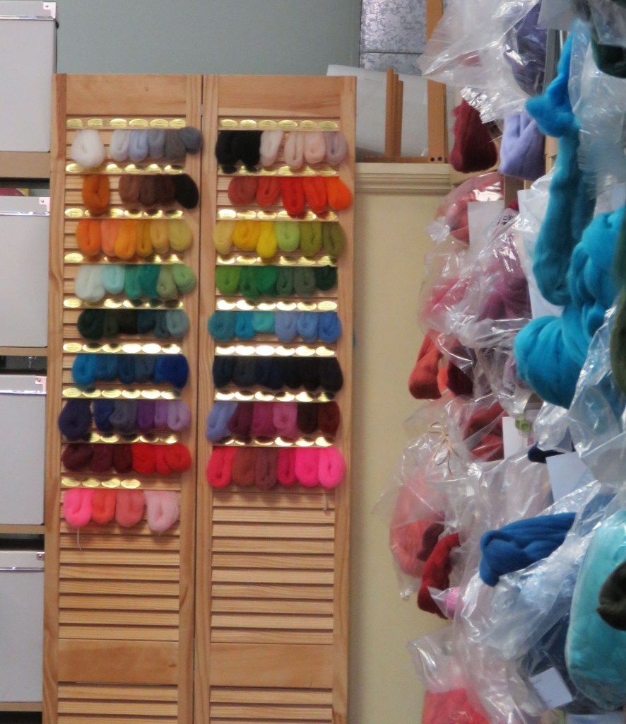 The color samples are tucked into this louvered door — what a good idea.