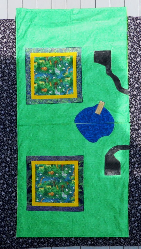 The two country sides, with pond, parking lot, and zoo. Lots of open space for toy animals, etc.
