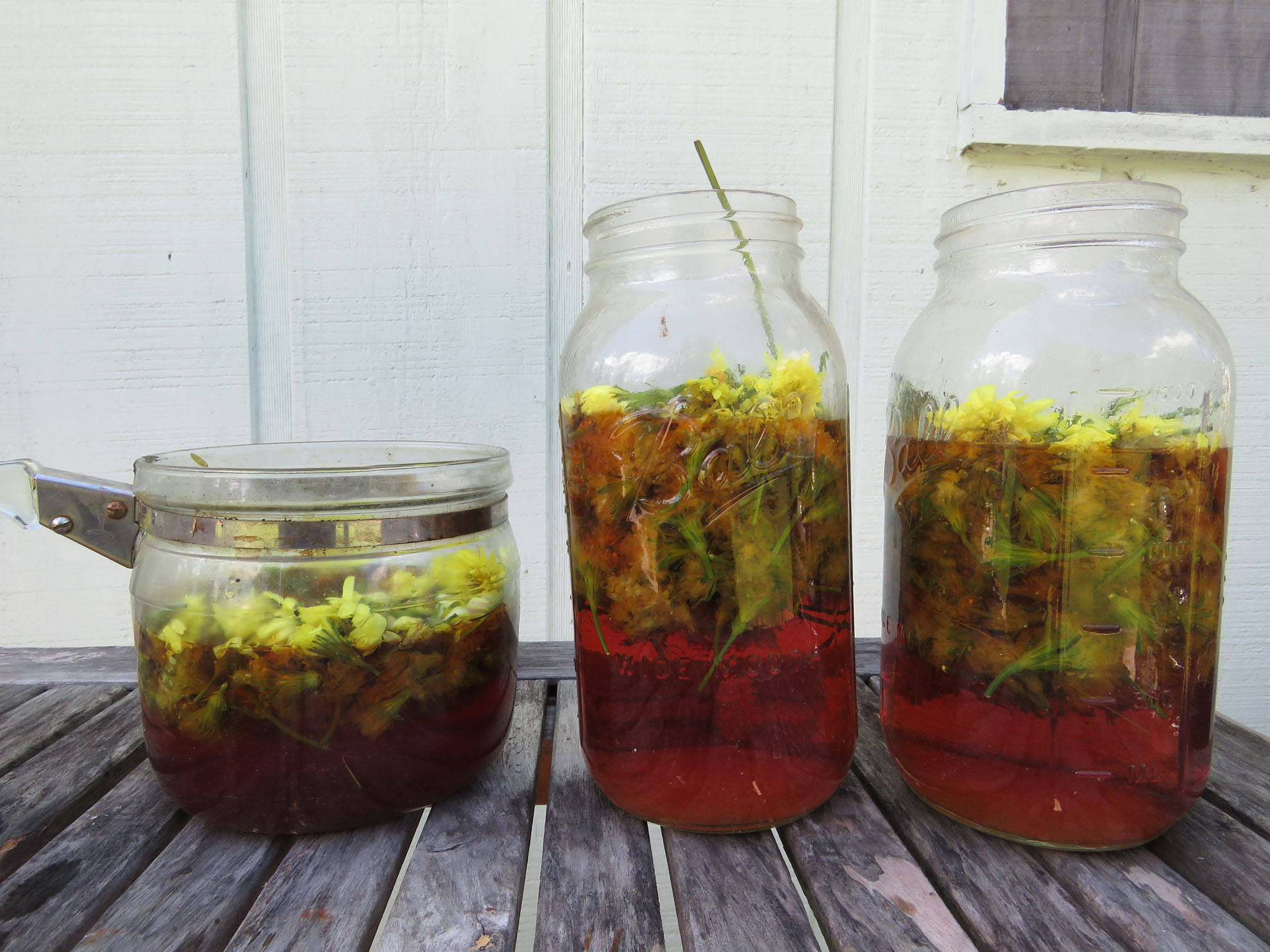 The steeped dye, one half hour after pouring hot water over the flowers.