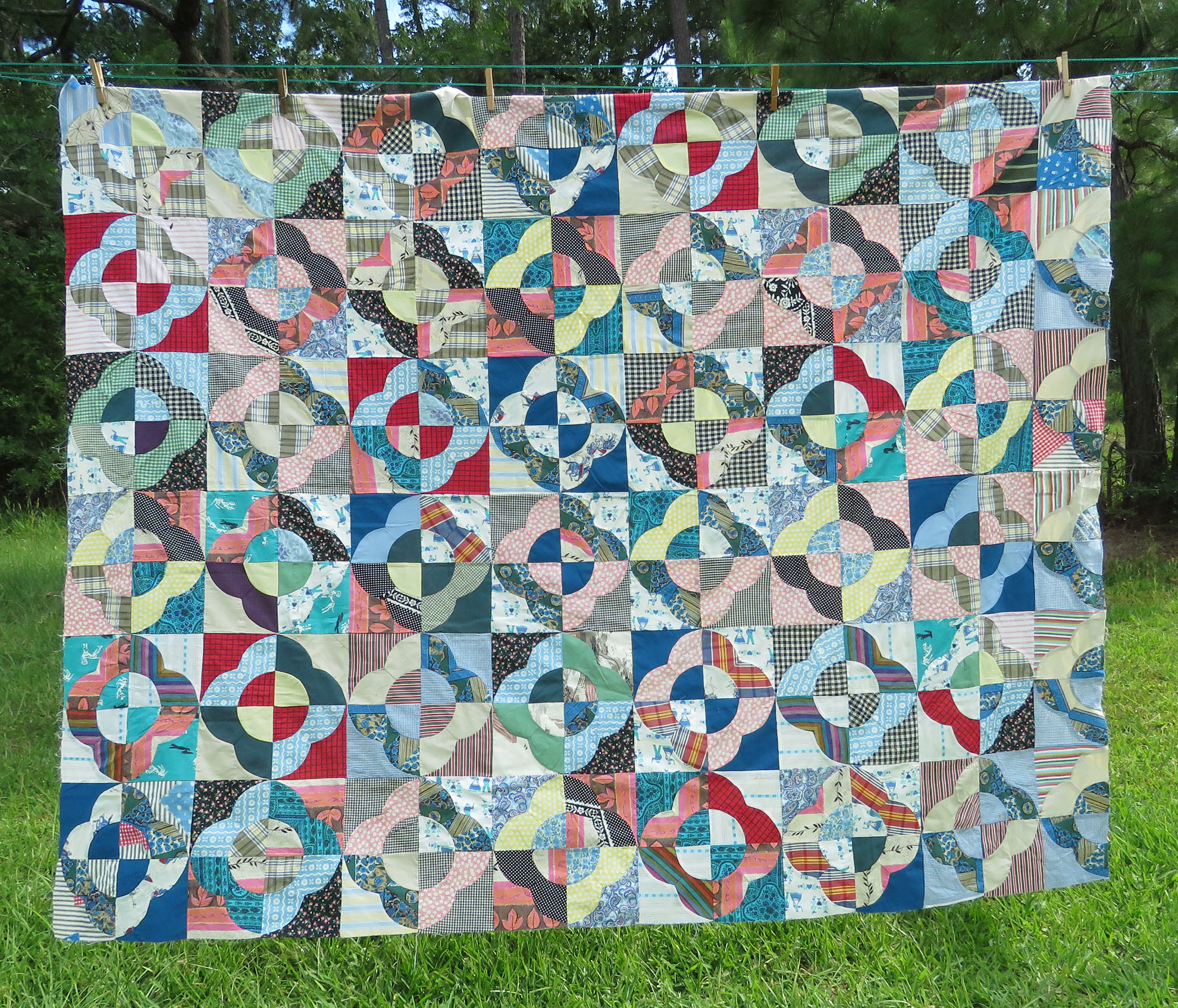 Vintage Flower Snowball quilt top is basted and needs to be hand-quilted.