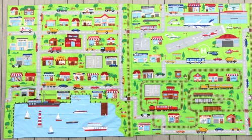 Two play mats showing the city sides. These are by Deborah Edwards for Northcott.