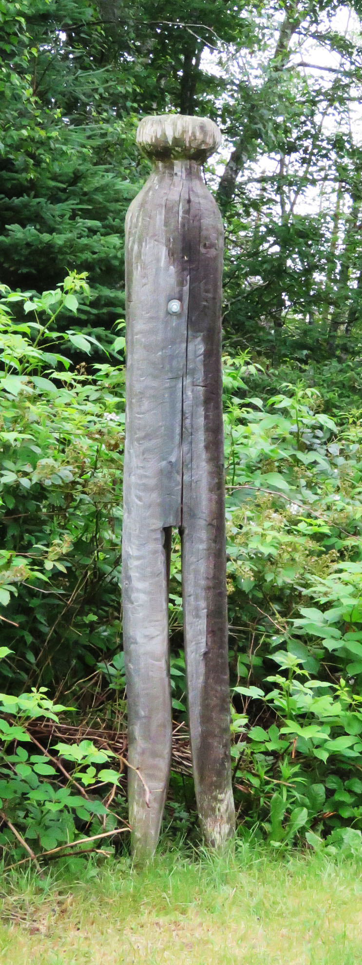Giant clothespin carving.