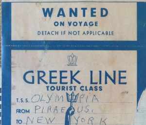 The ship that they sailed on, the Greek Line Olympia, sailed from 1955 to 1974, and I am guessing they went in the earlier part of that era. I am not absolutely sure that the dolls were purchased on that trip, but I think it is likely. New clues may turn up as I sort through the boxes.