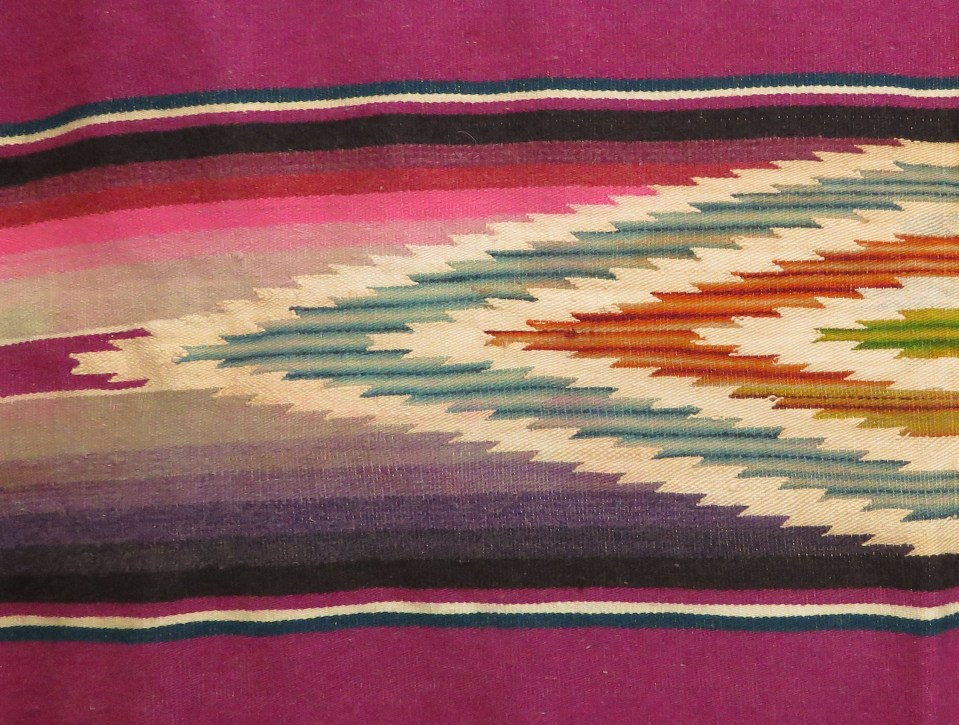Stepped diamond, requiring many small butterflies of weft, instead of one weft crossing the entire piece.