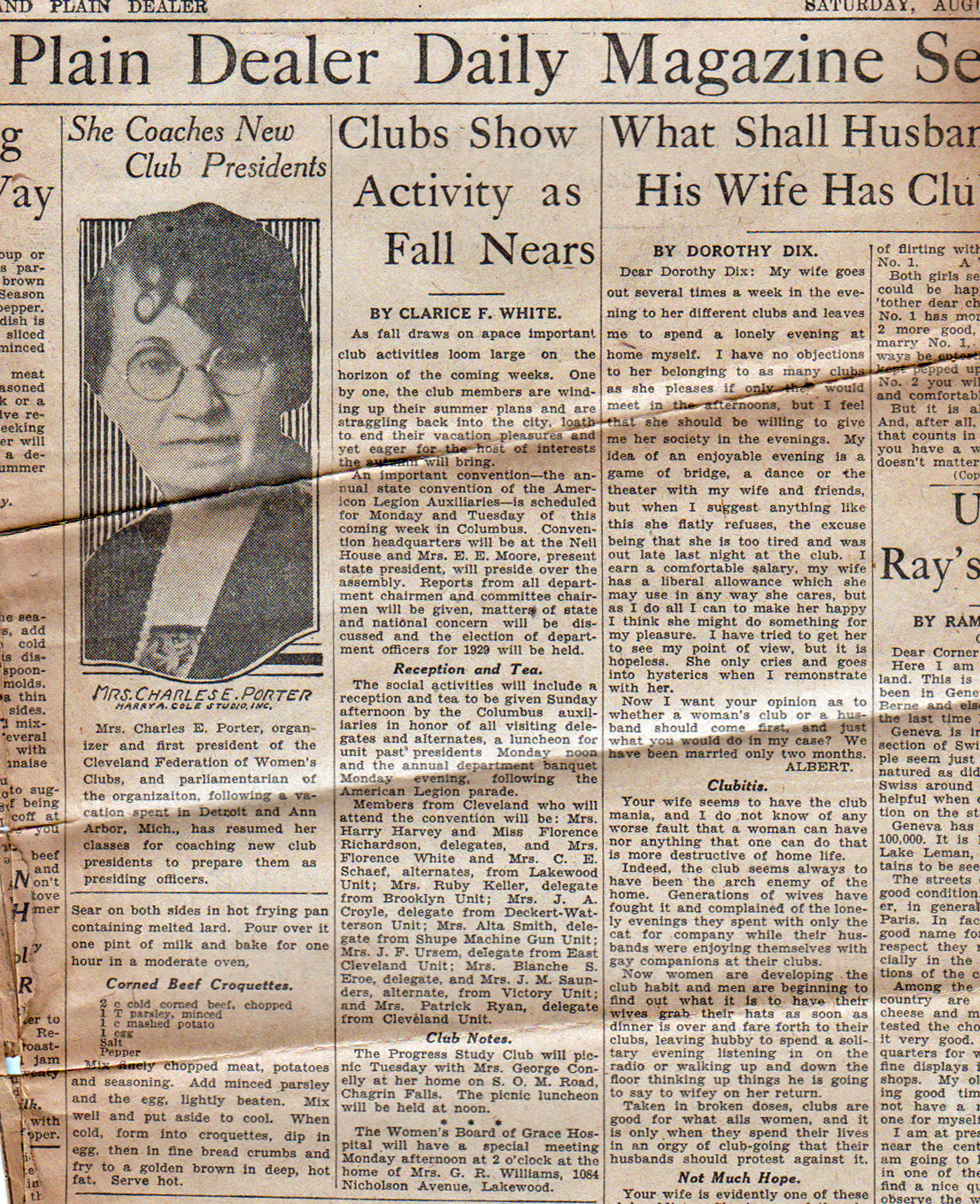 Two stories promoting women’s clubs, and one advice column panning them.