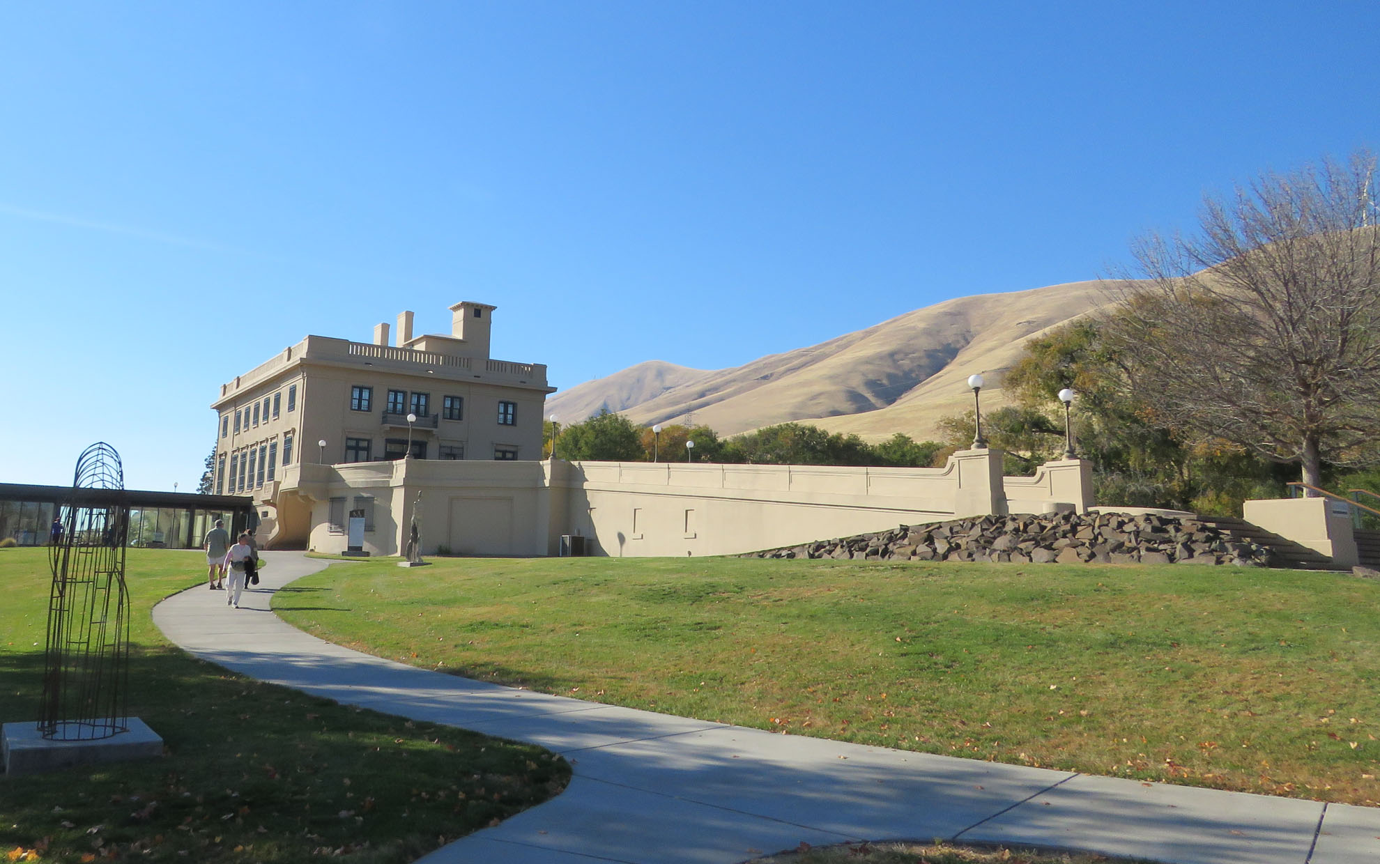 The Maryhill Museum of Art with the dry grassy hills behind.