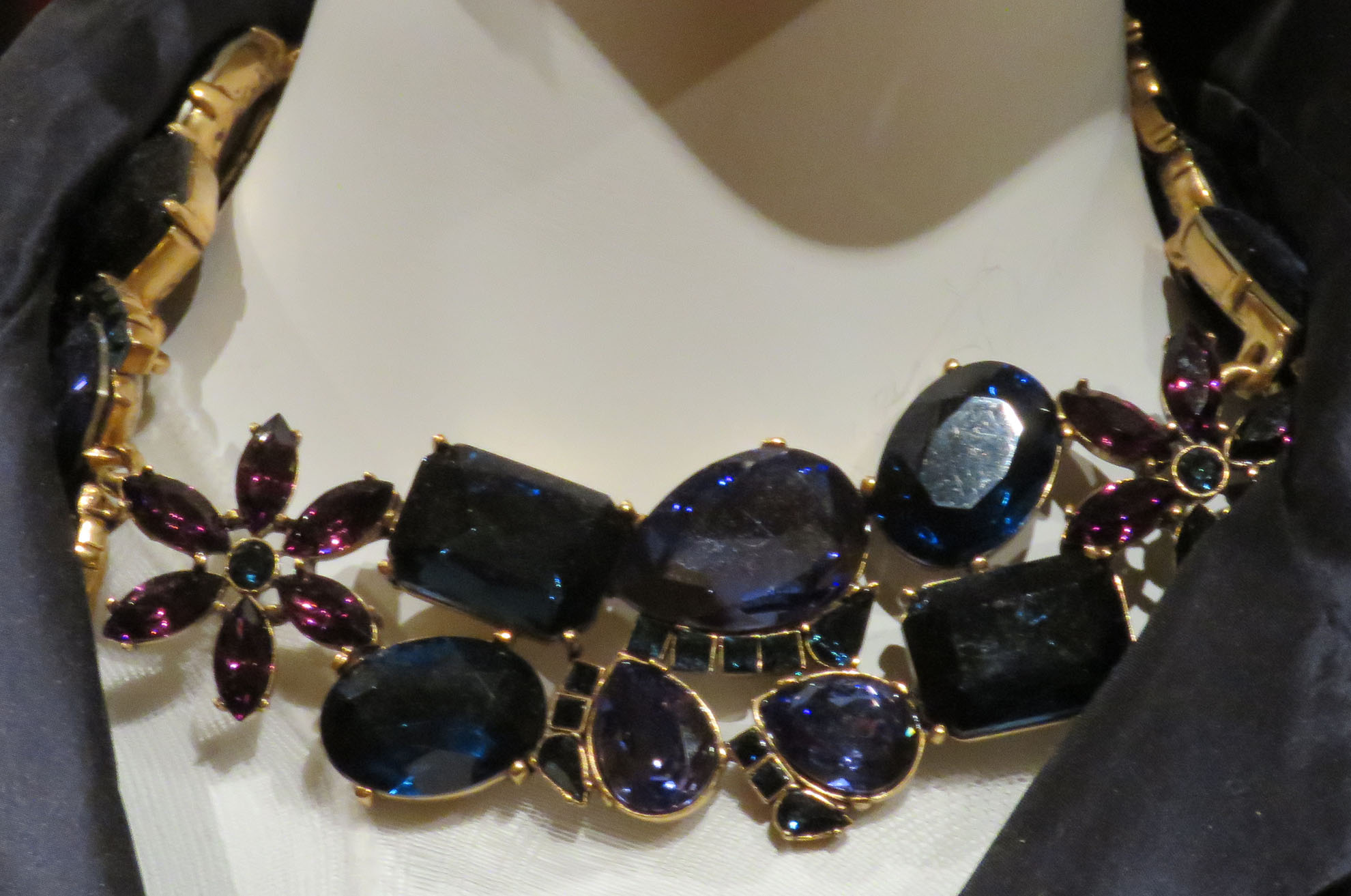 Detail showing Mica Ertegun’s necklace. Oscar de la Renta designed all the jewelry seen in the exhibition.