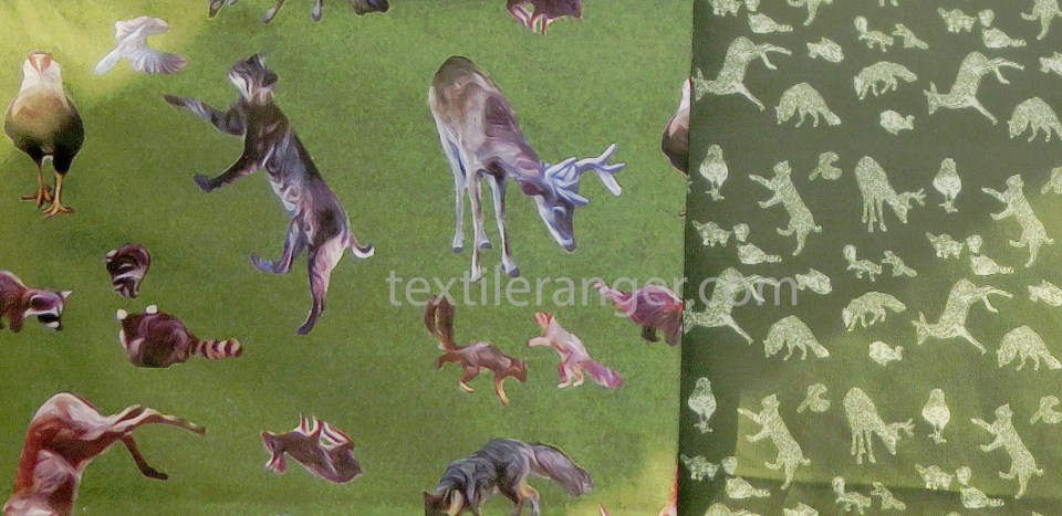 The medium-scale fabric with a mottled background, the small-scale fabric with a plain background.