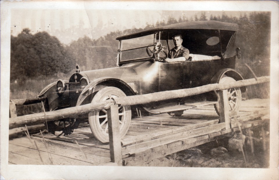 Car on bridge.
