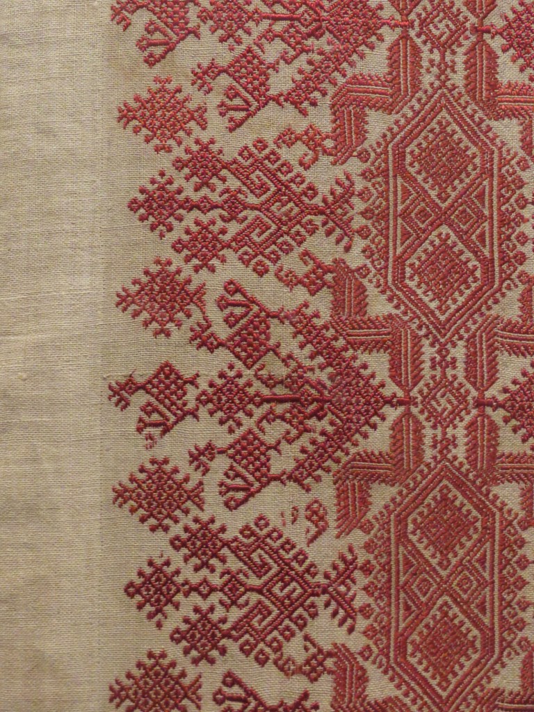 A bed curtain panel from the Cyclades, on view at Saint Louis Art Museum.
