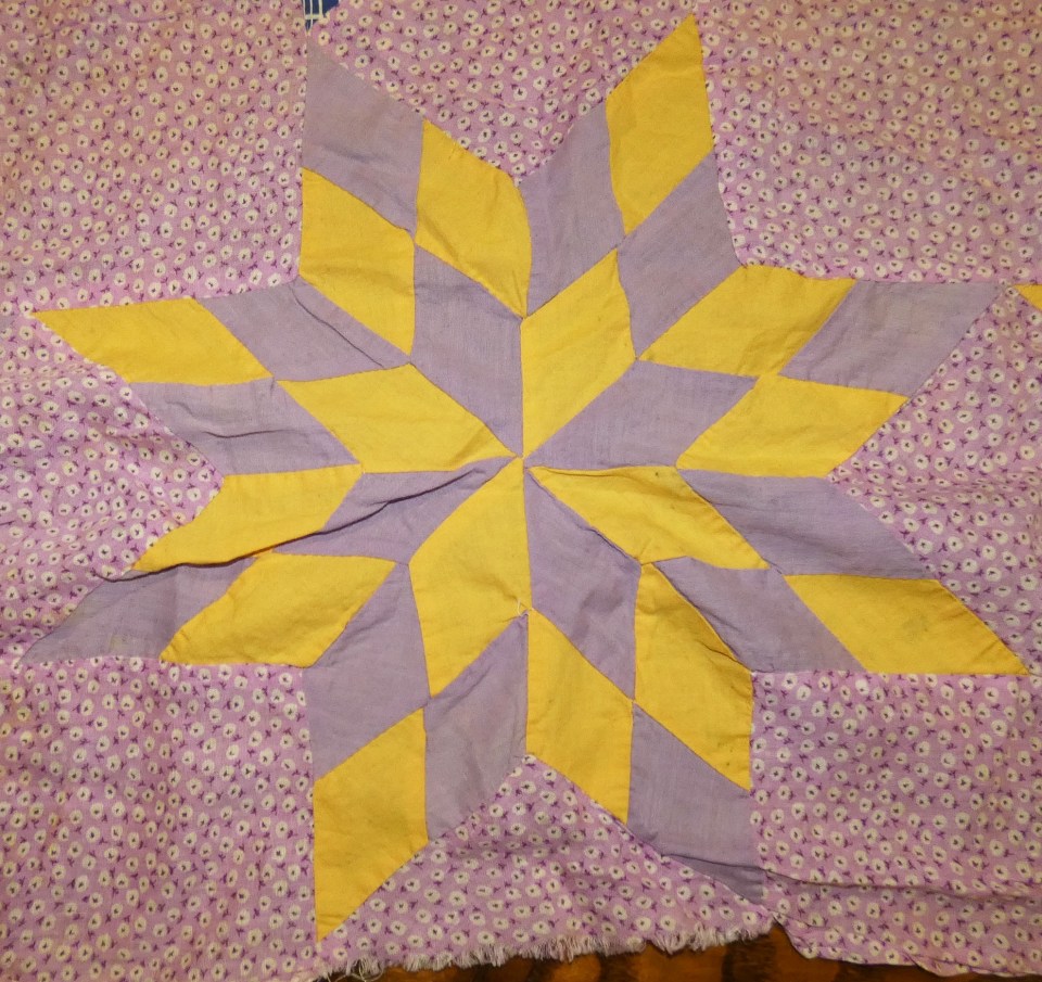 “Yellow gold with lavender was a common color scheme…” This is the only block with all solid-color pieces.