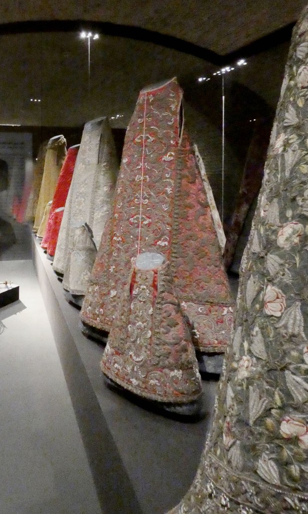 Row of dresses for the Picture of Grace, Aachen Cathedral Treasury.