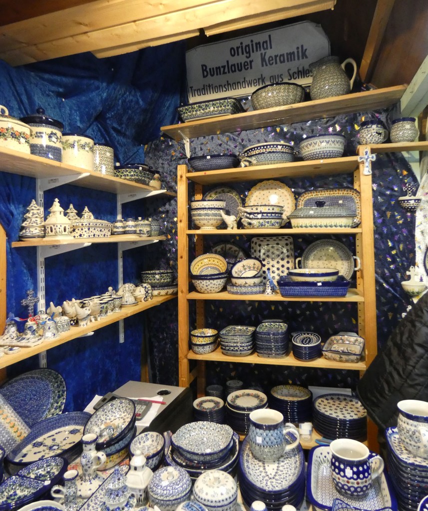 I bought a lot of souvenirs from this booth — pottery made in Poland.