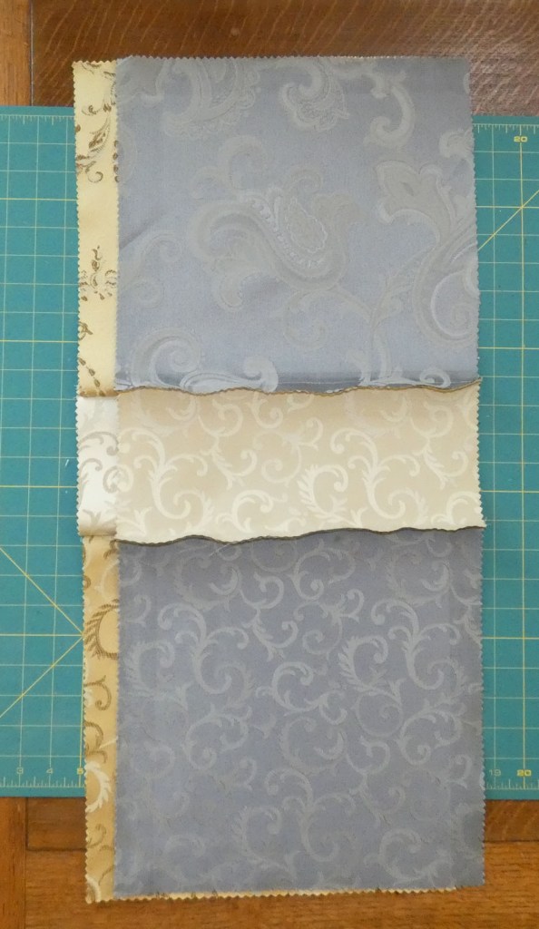 I left the edge of the gold piece showing so you can see the placement, but in your real bag, you need to line up the flipped pieces evenly.