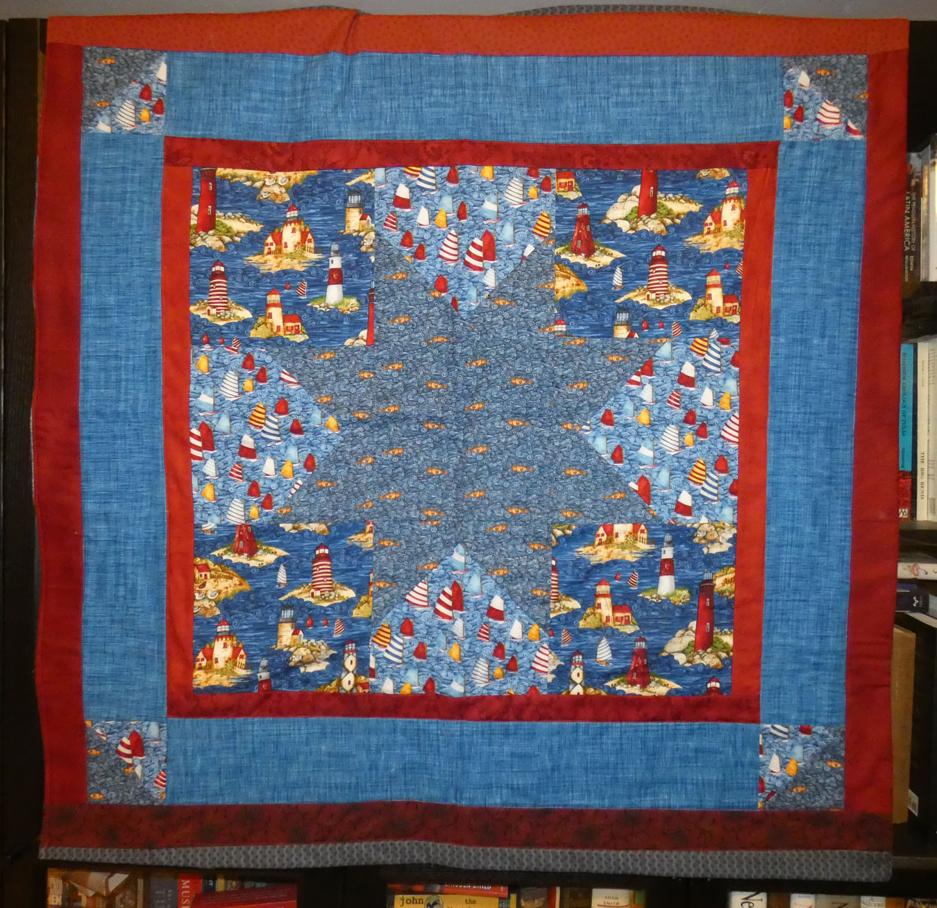 Sailboat lap quilt, 40″ square.