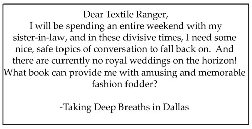 People rarely ask me for advice, but if they did, I’d be ready! (At least as long as they limited their questions to the area of recommendations on costume history books. And my answers would be limited to the 20 costume books I have picked up at used book stores. And all the stakeholders recognized that sadly, when these books talk about “World Fashion”, they mean only Europe and sometimes North America. But if all those conditions were met, my advice would be really helpful.)