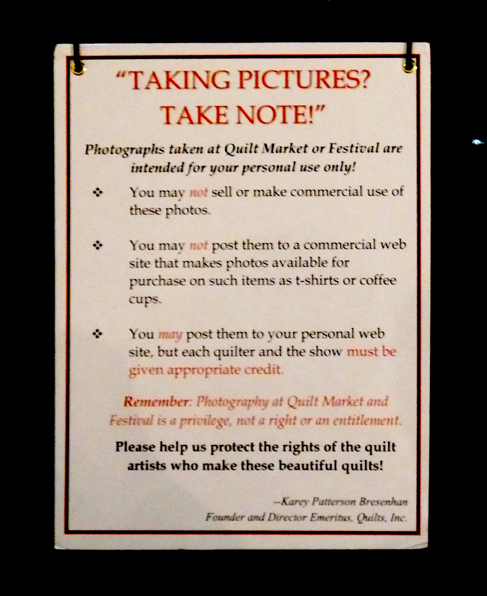 Sign explaining permitted photo practice.