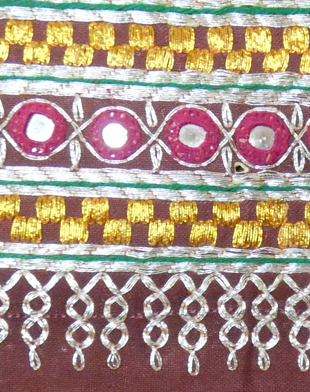 Close-up of the metallic threads and mirrors.