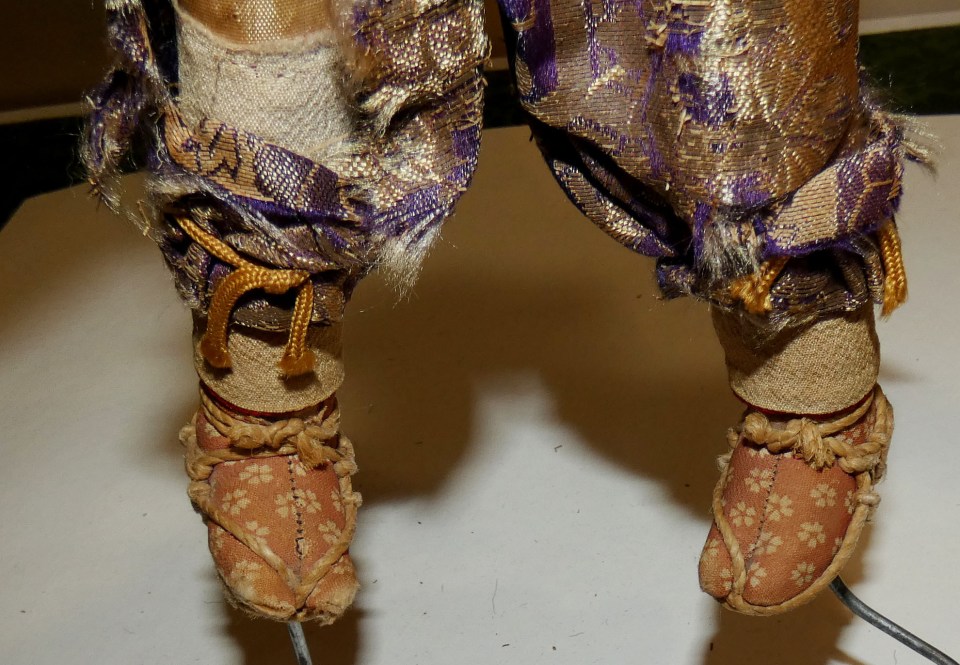 The legs, leg wrappings, socks, and sandals.