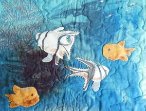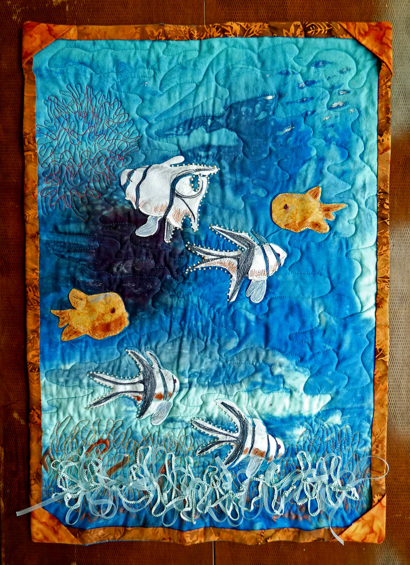 I had a lot of ideas, but then I got distracted by a huge donation of fabric, and as time was running out, I chose the least ambitious of them, a simple underwater scene.