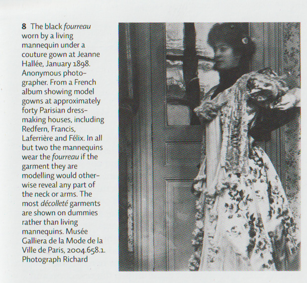 1890s model wearing a fourreau under the dress she is modeling.