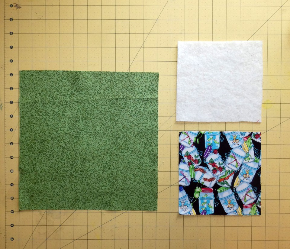 10″ square for backing, 6″ square for center, 6″ square of batting.