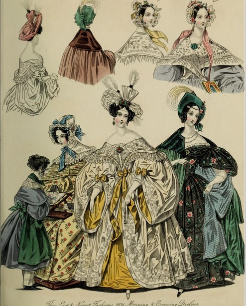 The V& A has several plates from The World of Fashion and Continental Feuilletons, Number 135 Vol. 12, June 1835. There are a few issues entirely online at Archive.org, Volume 6 from 1829, Volume 7 from 1830, and Volume 13 from 1836 (although they give that one’s publication date as 1824 for some reason).