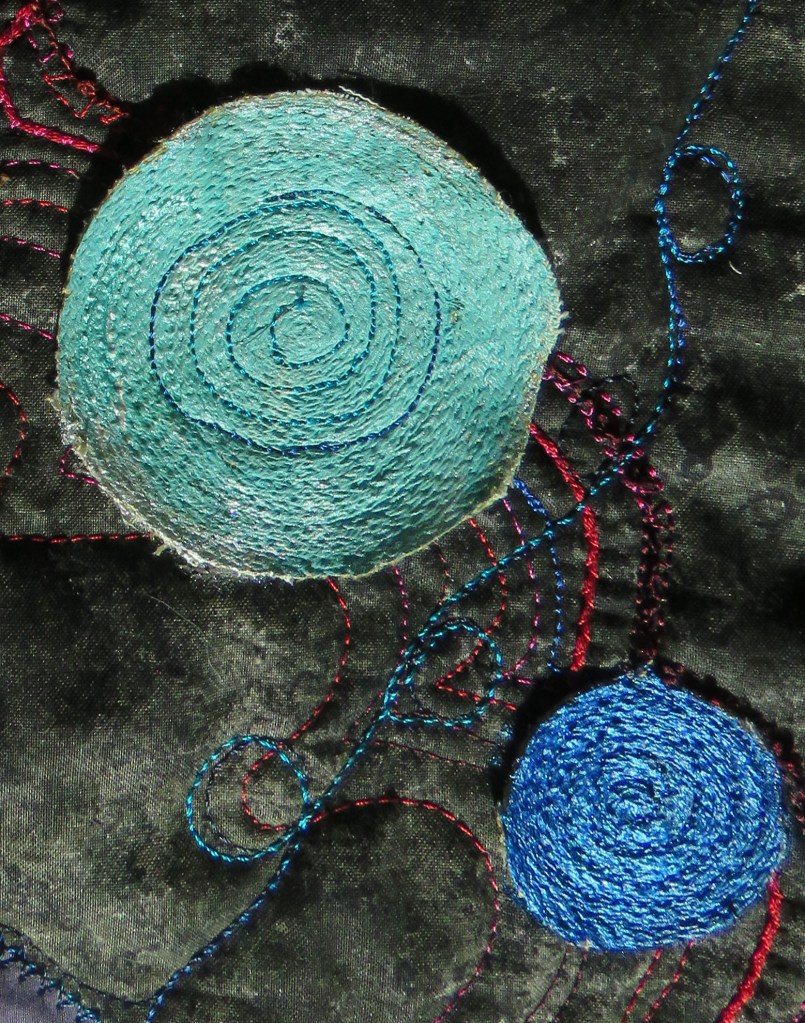 Furnishing fabric appliqued and painted.
