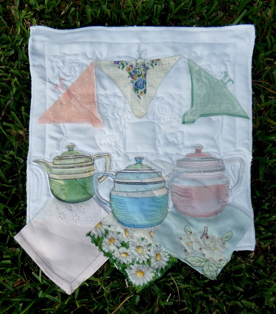 “Tea for Three.” The teapots are realistic but the handkerchief butterflies throw it into the “whimsical” category for me.