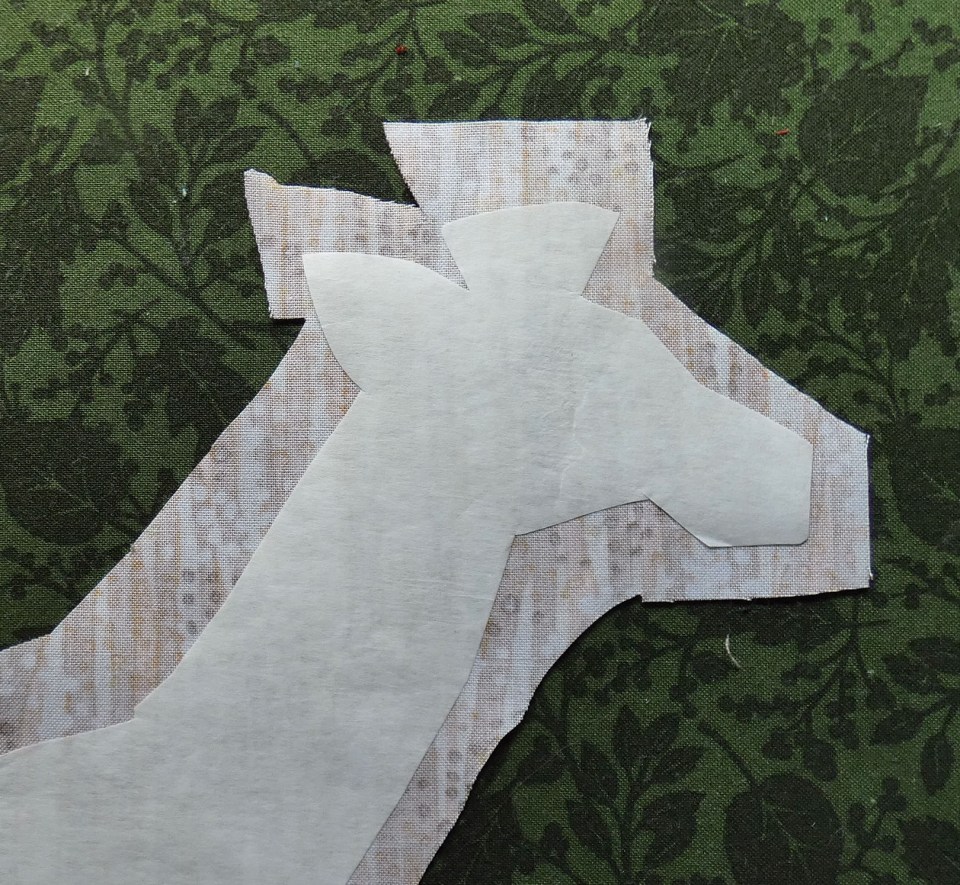 2) Cut around the paper pattern, leaving about a half-inch extra all around, for a seam allowance.