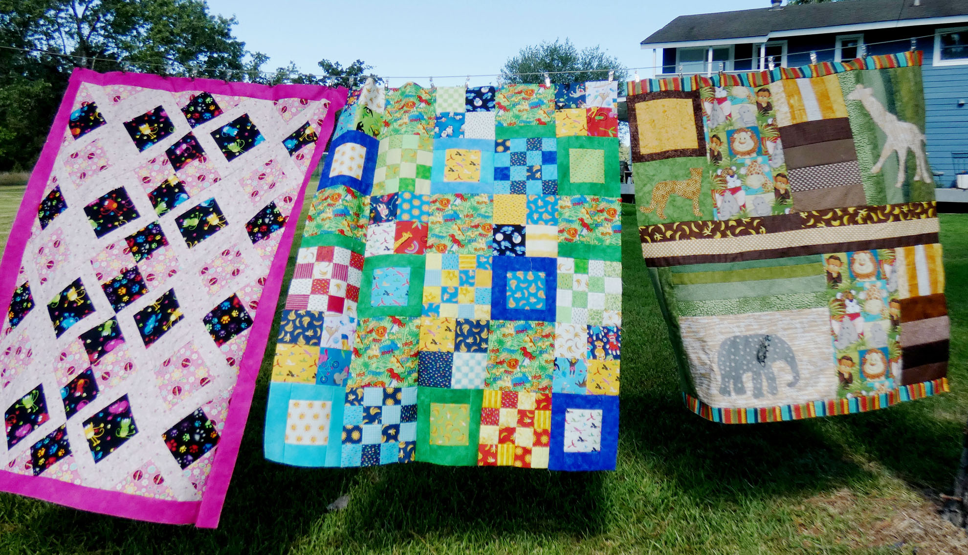 Three tops from donated fabric.