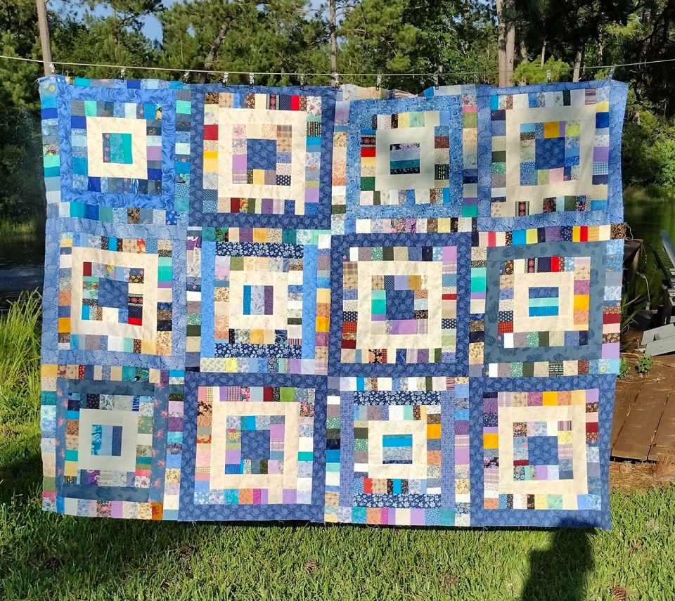 Lovely! Very striking. I like the different-sized white and blue square outlines. So much movement in this quilt.