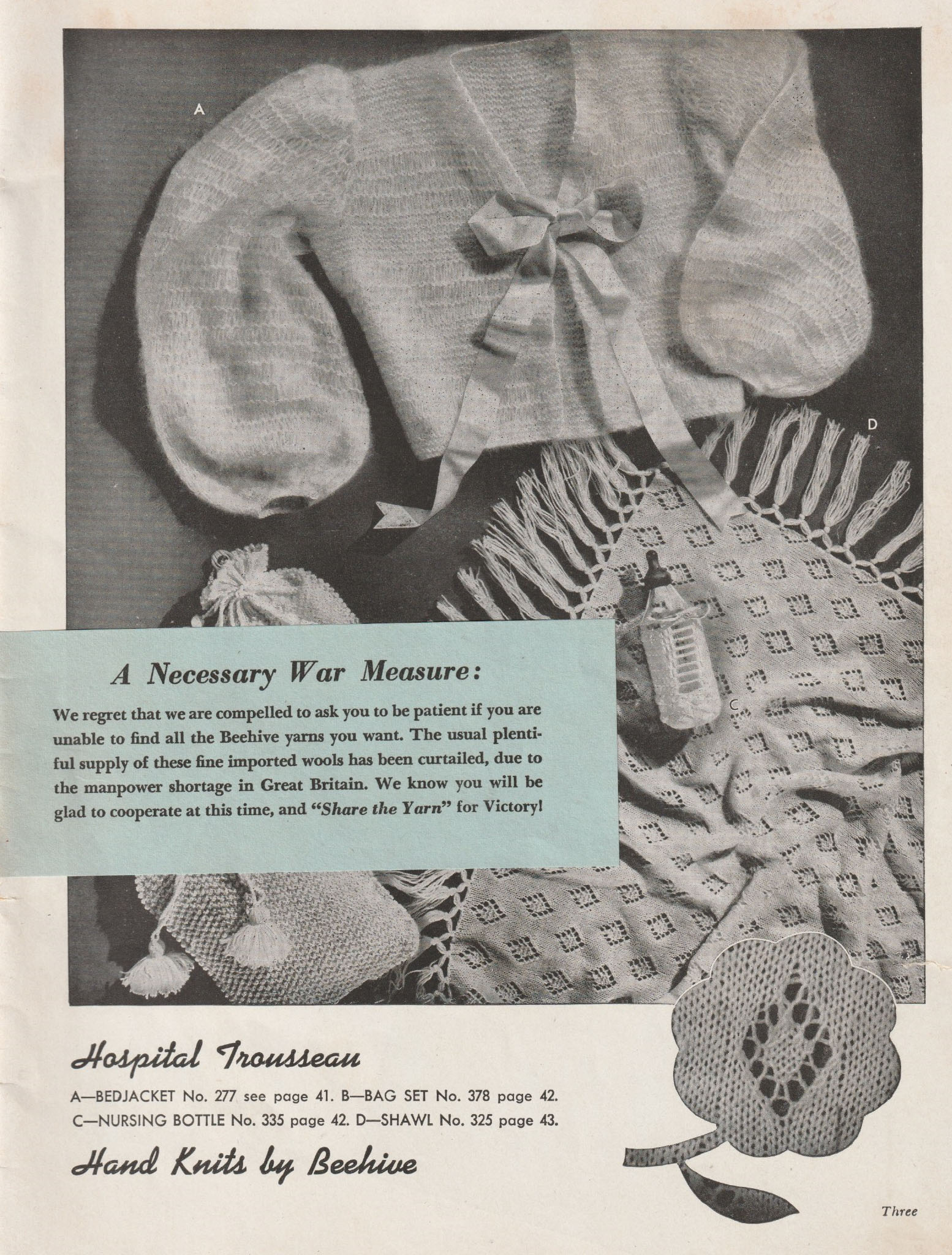 A small insert mentioned that due to the war, supplies of yarn might be short.