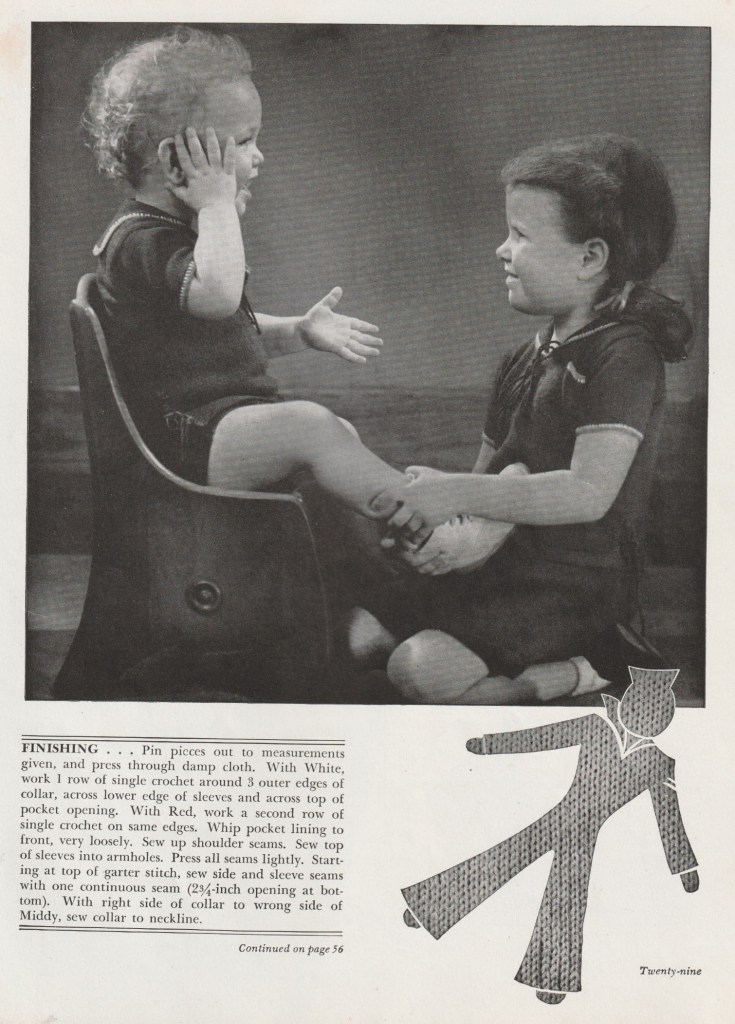 “Margaret, please stop pinching your brother!” 1941 sailor suits from Beehive Yarns.